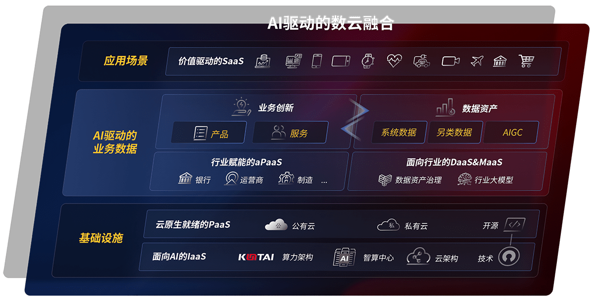 以君临国际鲲泰全国产化计算产品帮助金融行业客户构筑数字底座;以丰富的AI和数云产品及方案,,保障数据安全,,,挖掘数据价值,,,提升服务品质